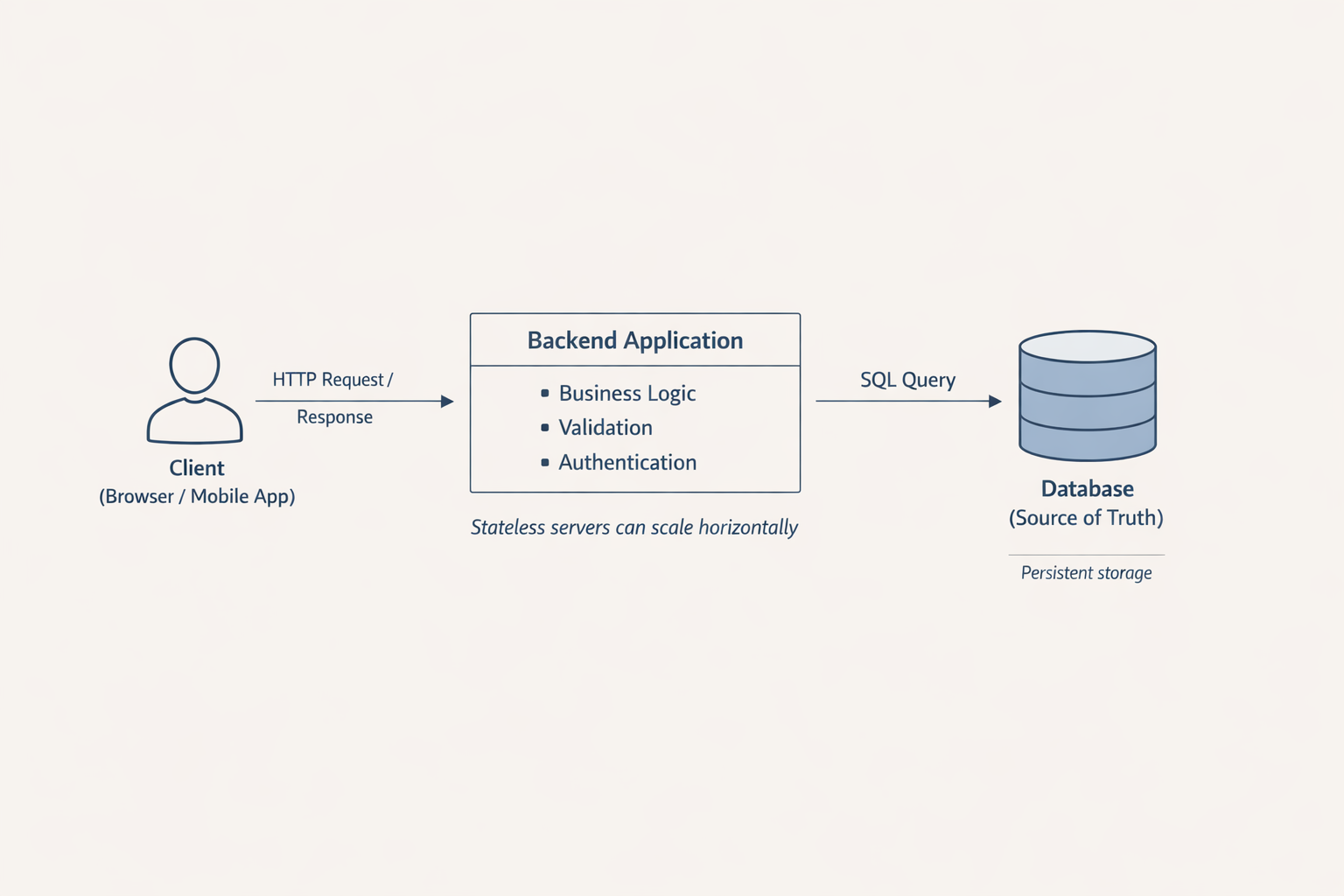 Client → HTTP → Backend → Database