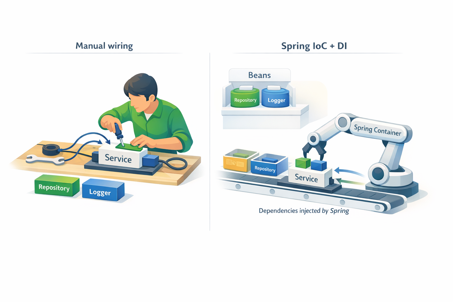 Dependency Injection (DI) — это способ передачи зависимостей объекту извне, вместо их создания внутри.