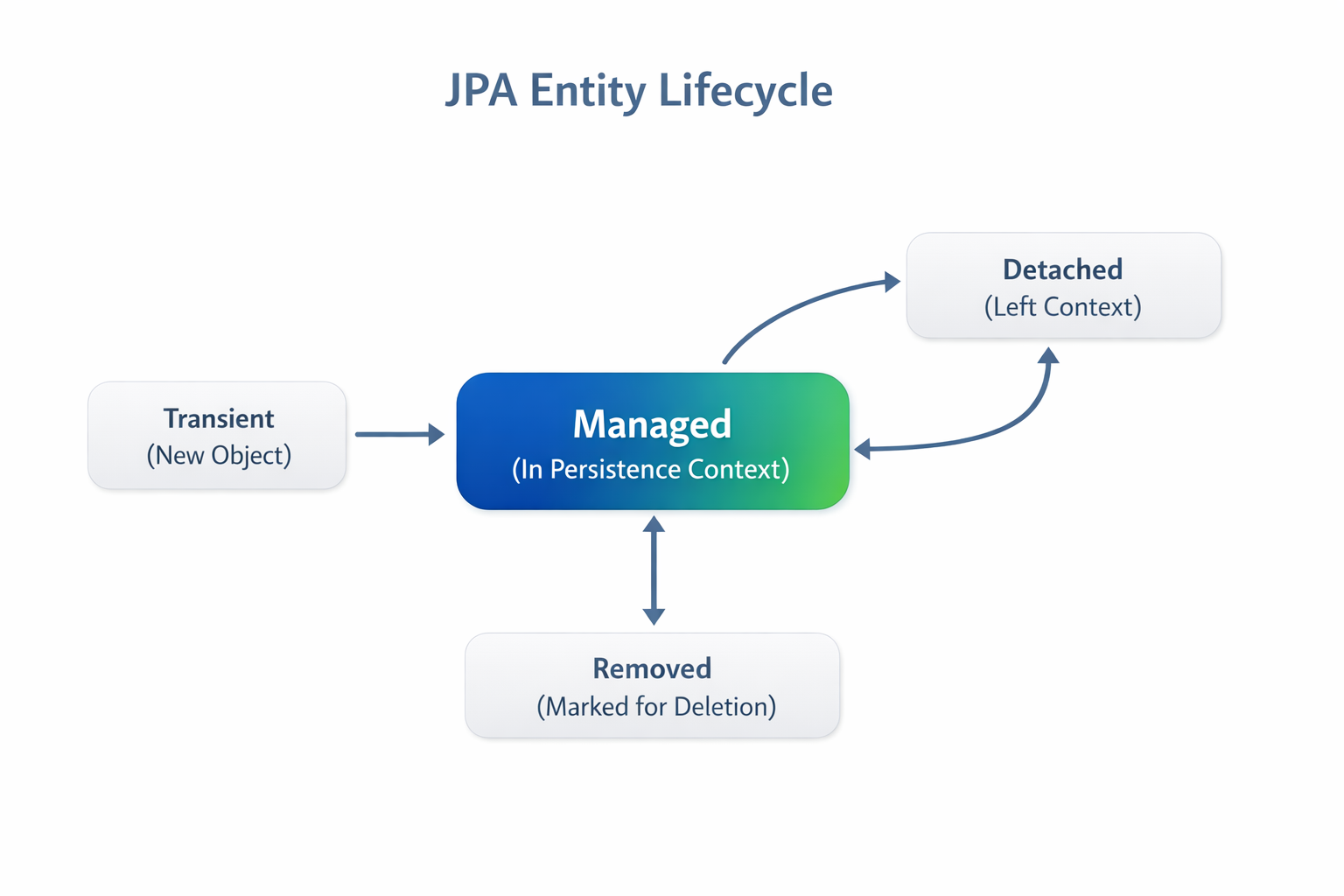 Ключевая концепция JPA — это Persistence Context — механизм, который обеспечивает согласованность между объектами в памяти и данными в базе.