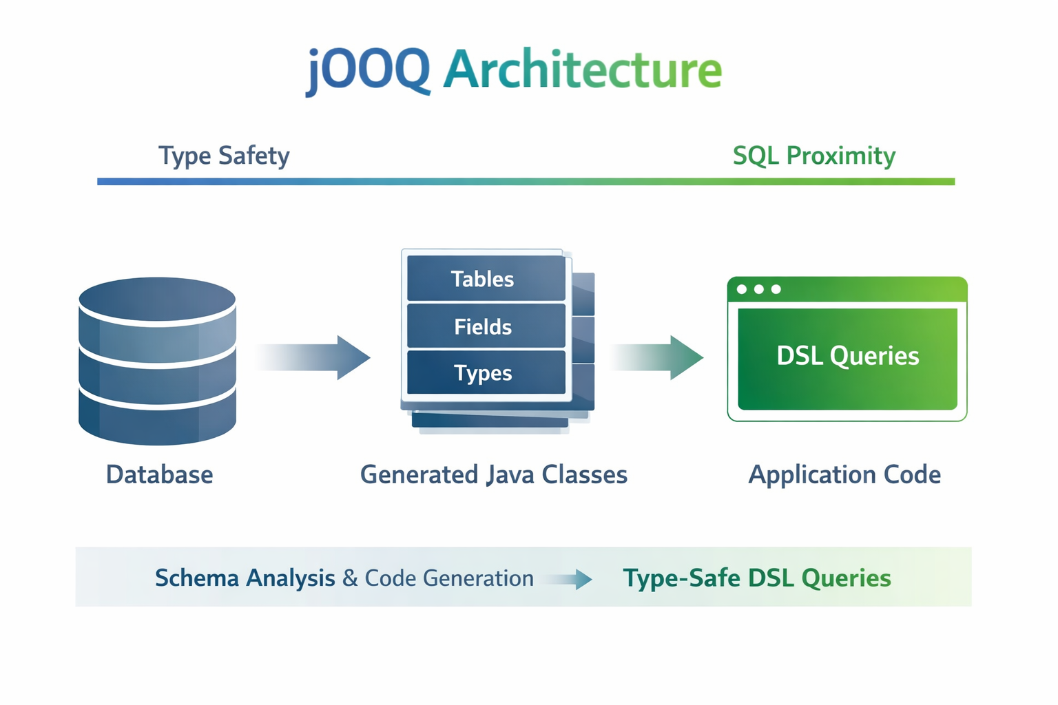 Одна из ключевых возможностей jOOQ — генерация Java-кода по уже существующей схеме базы данных.