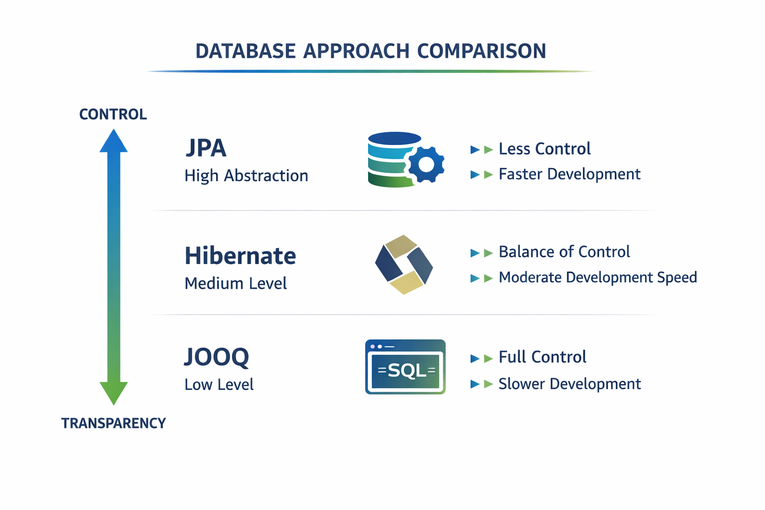 На практике выбор между JPA/Hibernate и jOOQ редко бывает абсолютным. Во многих системах ORM используют для типового CRUD и доменных сценариев, а jOOQ — для сложных запросов, аналитики и участков, где особенно важен контроль над SQL. Поэтому вопрос обычно звучит не “что лучше вообще”, а “какой уровень абстракции подходит для этой конкретной задачи”.